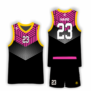 Kolorowe komplety koszykarskie męskie to spodenki do kolan na szerokiej gumce, a także luźna koszulka bez rękawów z dekoltem w serek. Taki krój zapewnia pełną swobodę ruchów i tym samym umożliwia skupienie się na grze, bez wrażenia obcierania materiału, czy wpijania się szwów w skórę. W naszej ofercie znajdują się komplety w bardzo wielu kolorach, pozwalających odróżnić zawodników konkretnej drużyny na boisku koszykarskim od ich rywali. Poprzez żywą, nasyconą kolorystykę z motywem pasków, figur geometrycznych, cieniowania i innych wzorów, zapewniamy, że każda drużyna koszykówki znajdzie u nas dokładnie to, czego potrzebuje. Na życzenie oferujemy także personalizowane nadruki na koszulkach metodą sublimacji. W razie potrzeby zapewniamy także indywidualną kolorystykę koszulek.